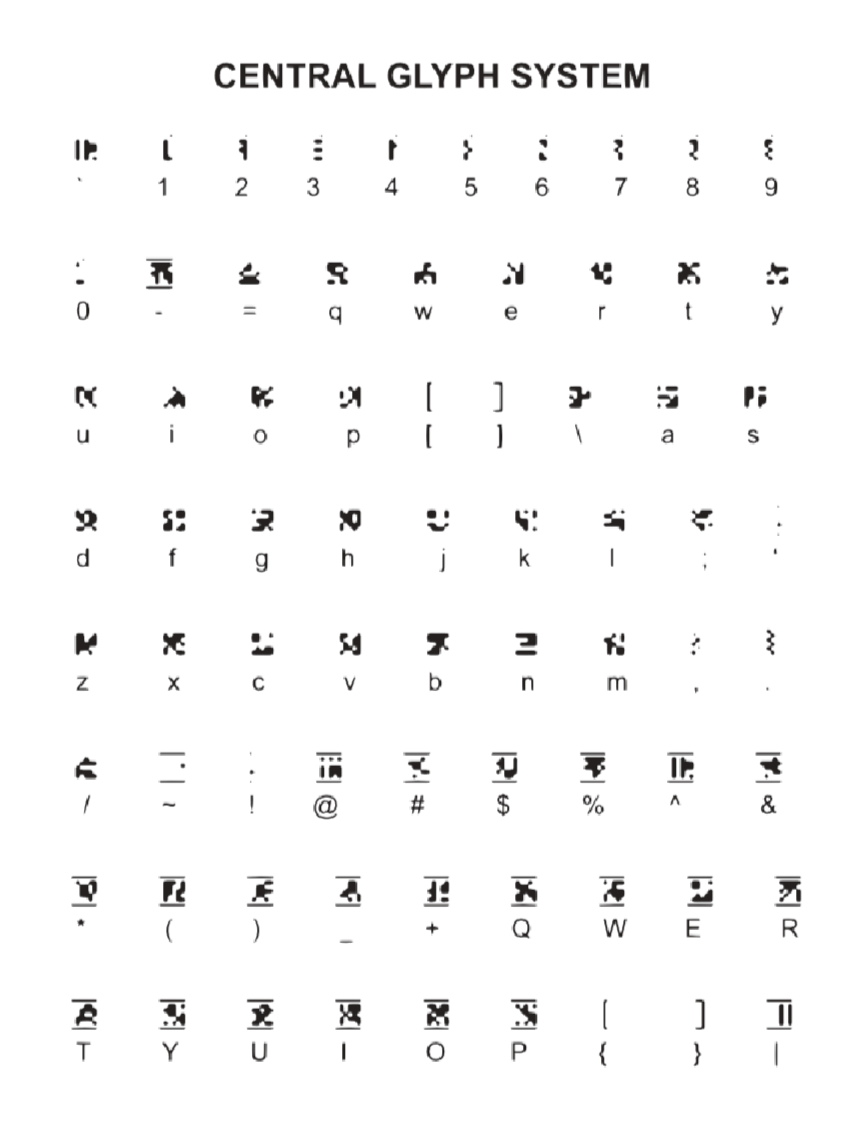Before we could develop anything, the first step was to create an in-world alphabet and numeric system, which was developed by our concept artist. The alphabet had a formal calligraphic character system as well as a machine glyph system, which was hand-drawn and then I digitized it, and we would later develop a third alphabet system suited for handwriting.